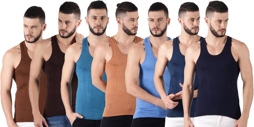 Dollar Lehar Men Combed Cotton Round Neck Vest -Pack of 7- Colour may Vary