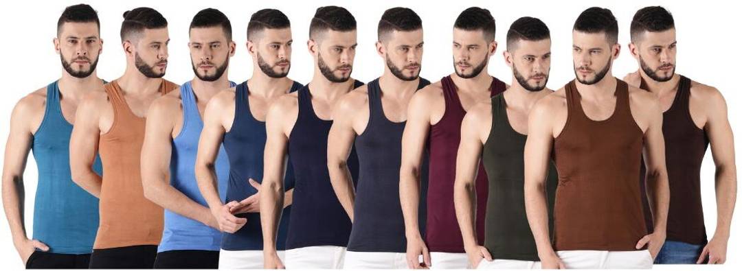 Dollar Lehar Men Combed Cotton Round Neck Vest -Pack of 10- Colour may Vary