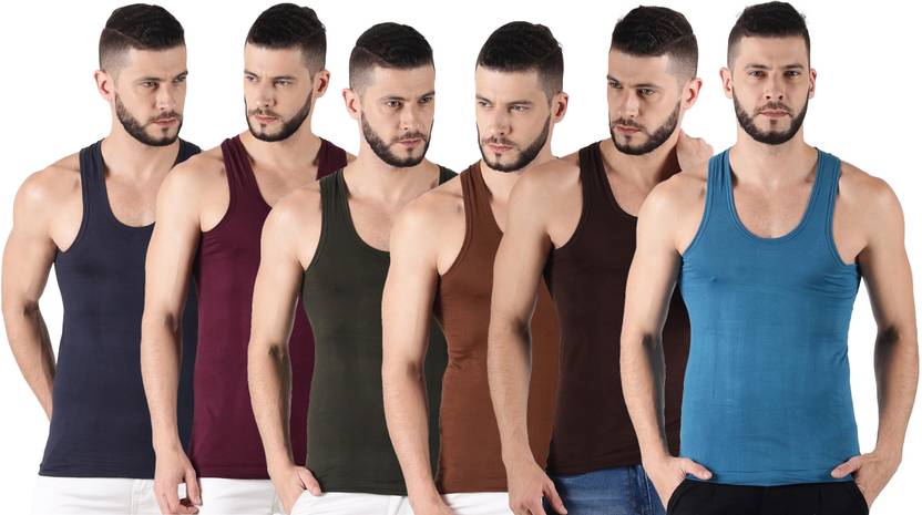 Dollar Lehar Men Combed Cotton Round Neck Vest -Pack of 6- Colour may Vary