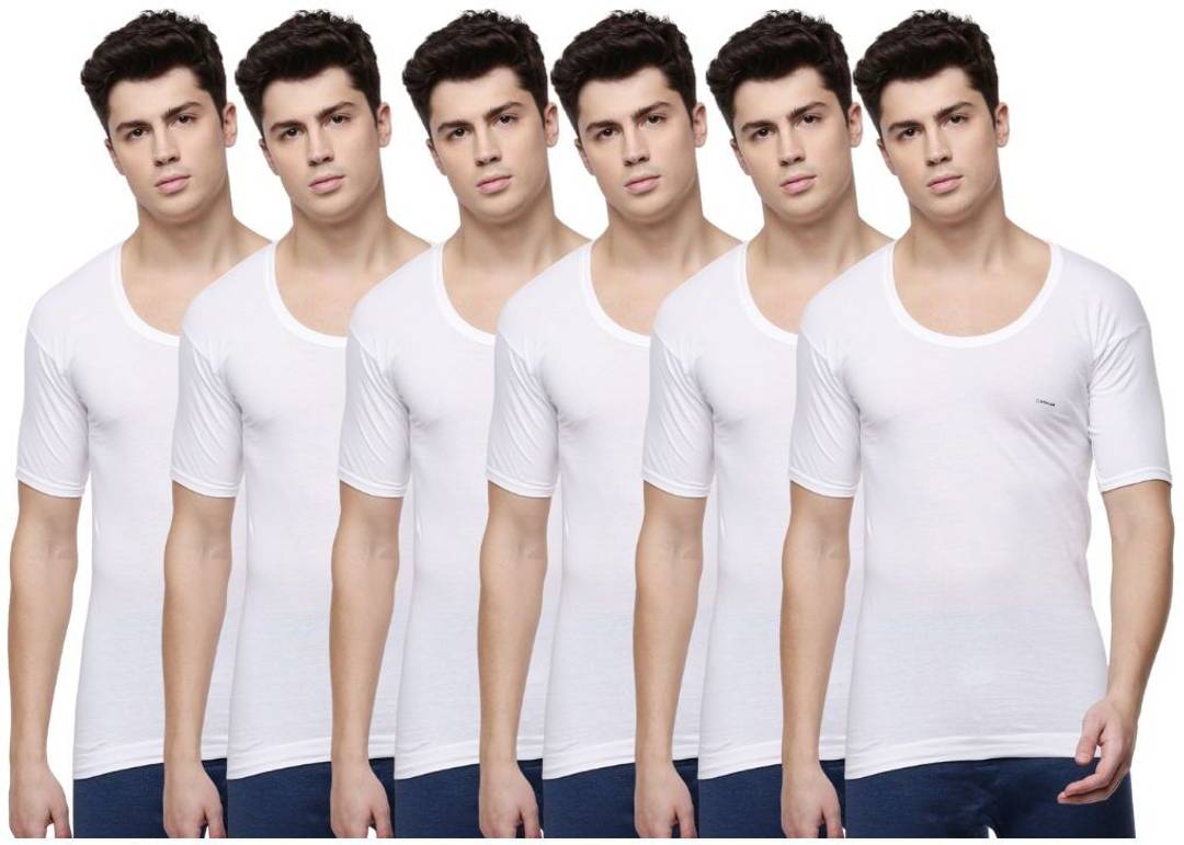 Dollar Lehar Men Combed Cotton Round Neck With Sleeve Vest -Pack of 6- White