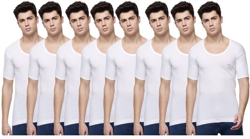 Dollar Lehar Men Combed Cotton Round Neck With Sleeve Vest -Pack of 8- White