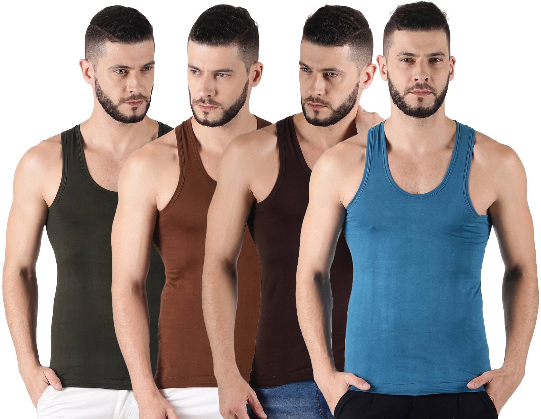 Dollar Lehar Men Combed Cotton Round Neck Vest -Pack of 4- Colour may Vary