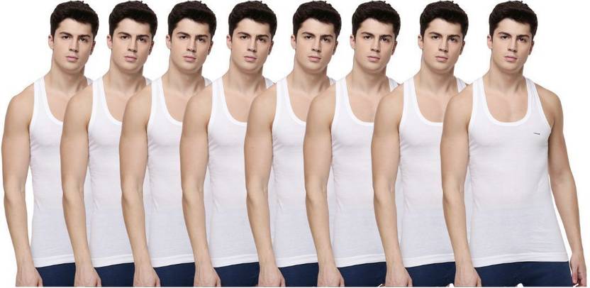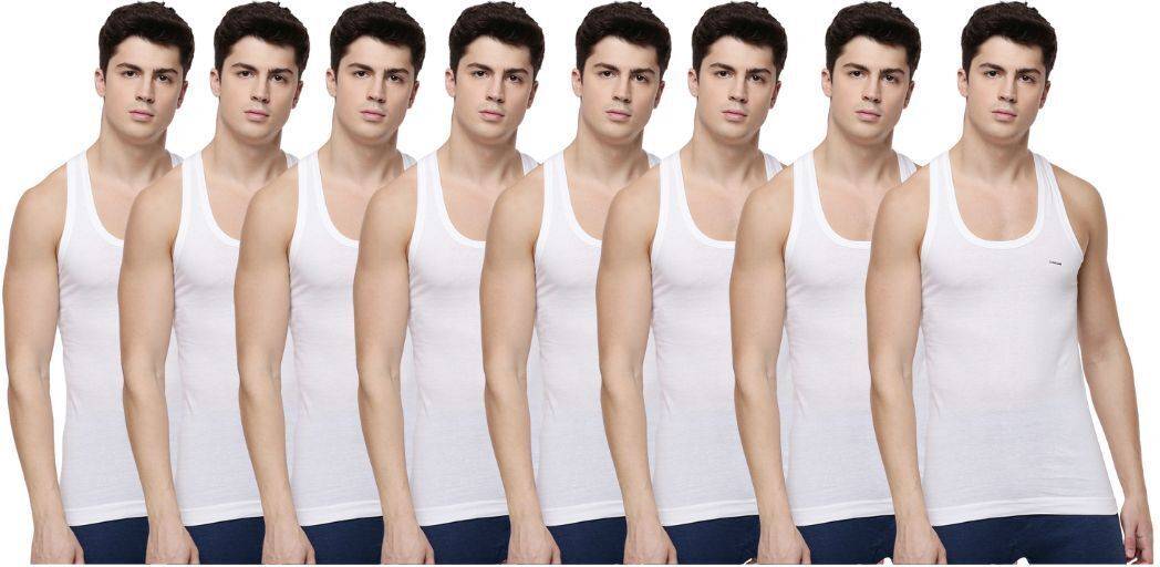Dollar Lehar Men Combed Cotton Round Neck Vest -Pack of 8- White