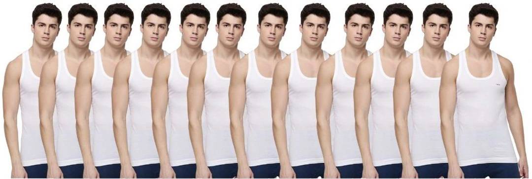 Dollar Lehar Men Combed Cotton Round Neck Vest -Pack of 12- White