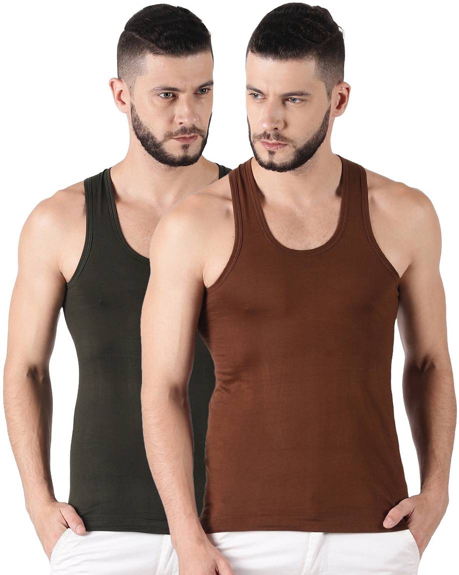 Dollar Lehar Men Combed Cotton Round Neck Vest -Pack of 2- Colour may Vary