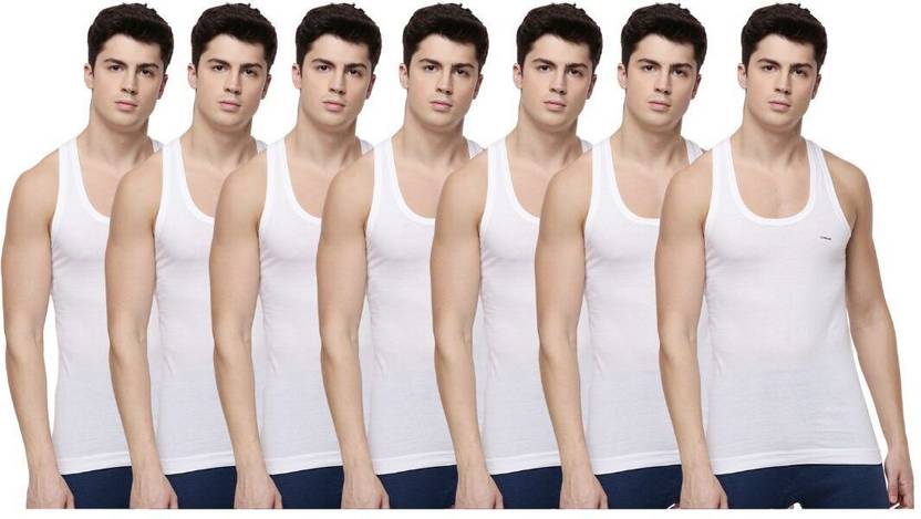 Dollar Lehar Men Combed Cotton Round Neck Vest -Pack of 7- White