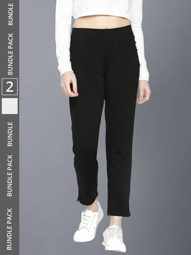 Dollar Missy Pack of 2 Women Regular Fit Black Cotton Blend Trousers
