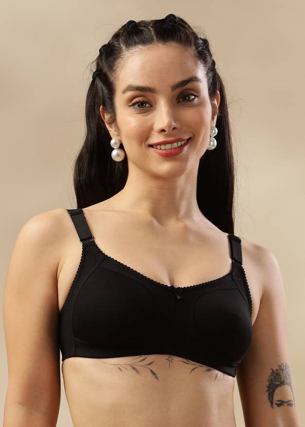 Dollar Missy Women Wire Free Non Padded Black color Panelled Support Bra