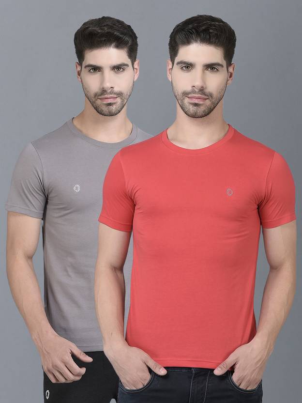 Dollar Pack of 2 Men Solid Crew Neck Cotton Blend Multicolor T-Shirt