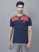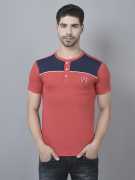 Men Solid Henley Neck Cotton Blend Red T-Shirt