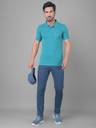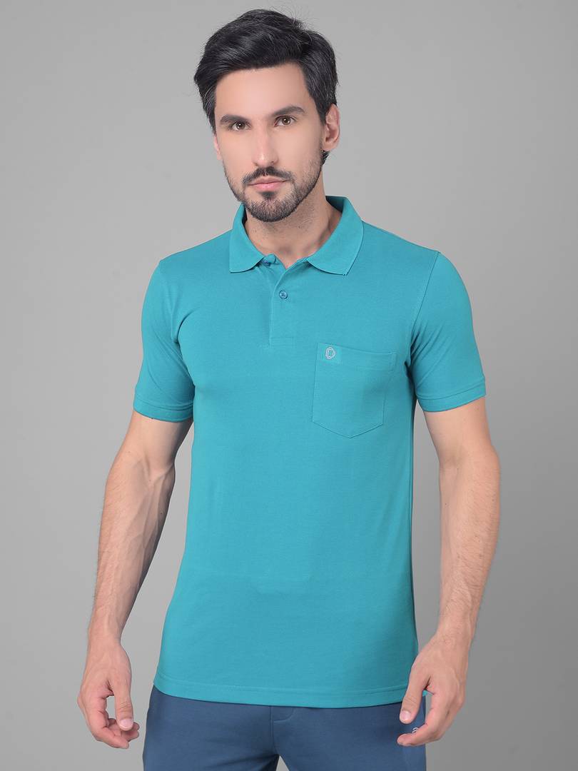 Dollar Solid Men Polo Neck Blue T-Shirt