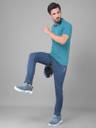 Dollar Solid Men Polo Neck Blue T-Shirt