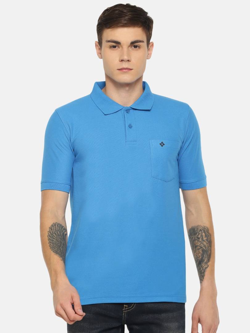 Dollar Solid Men Polo Neck Blue T-Shirt