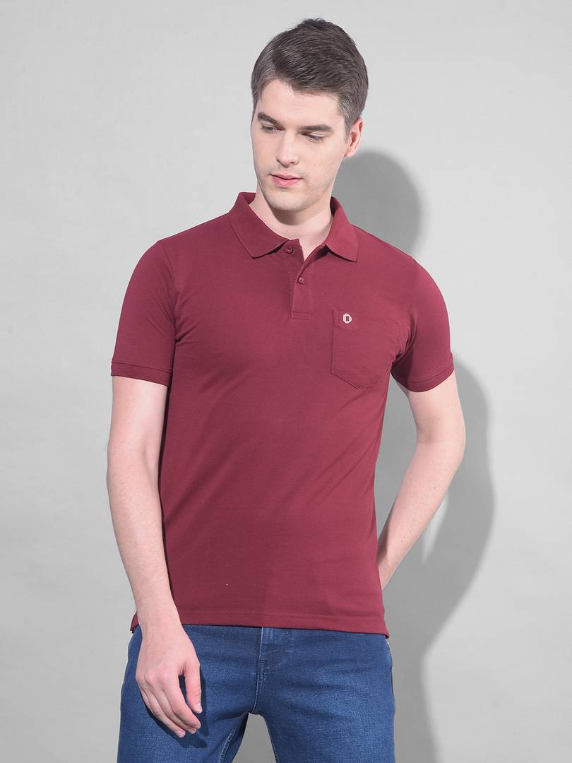 Dollar Solid Men Polo Neck Maroon T-Shirt