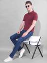 Men Solid Polo Neck Cotton Blend Maroon T-Shirt