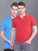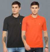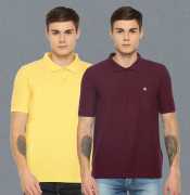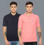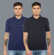 Dollar Pack of 2 Men Solid Polo Neck Cotton Blend Multicolor T-Shirt