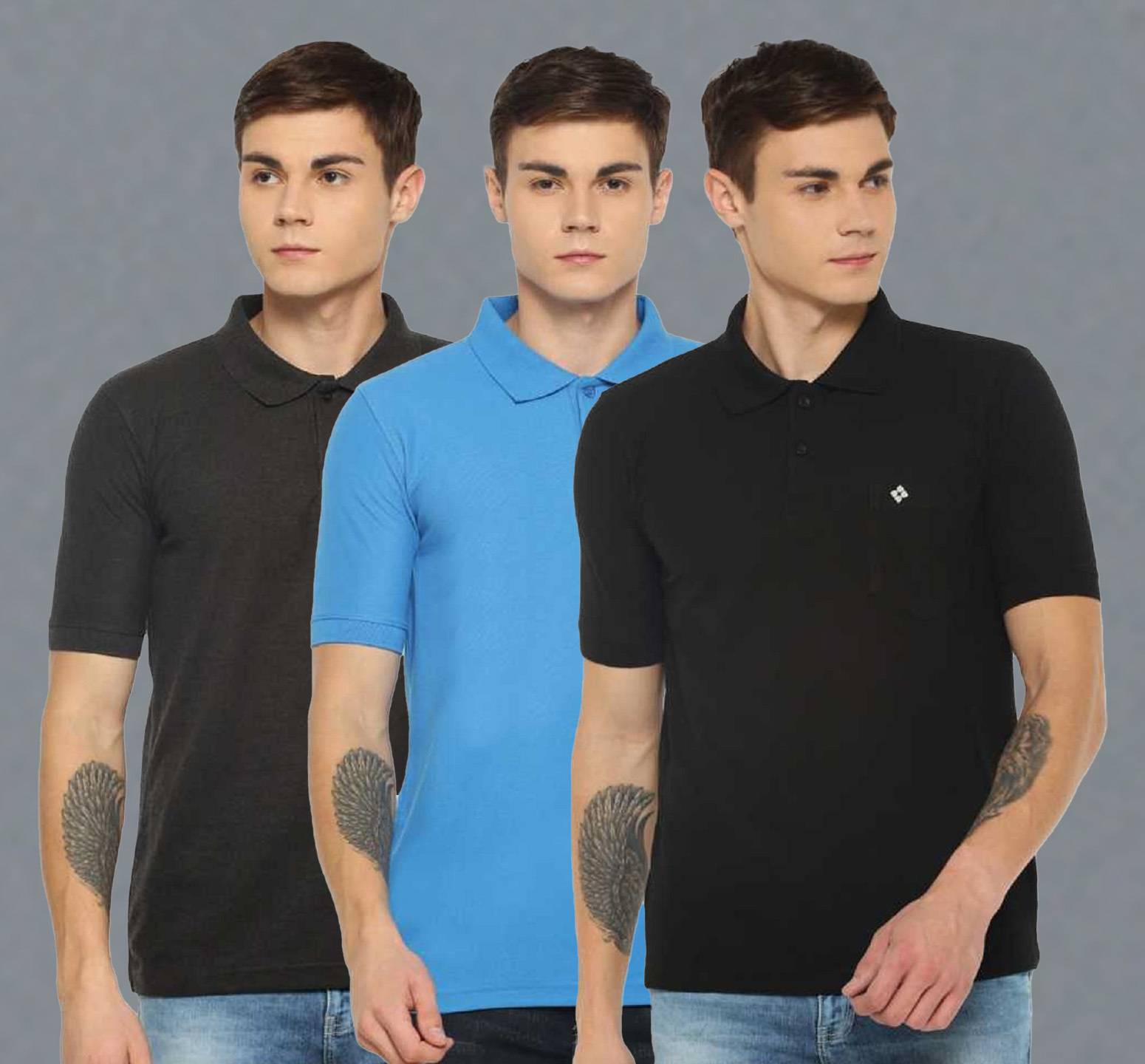 Dollar Solid Men Polo Neck Multicolor T-Shirt