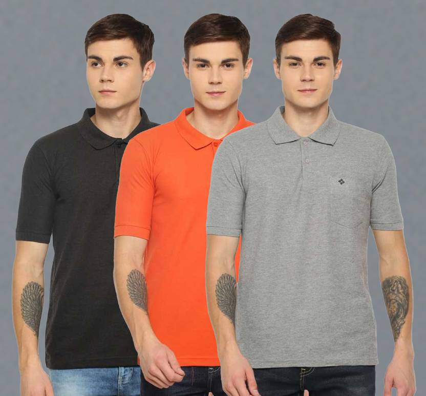 Dollar Pack of 3 Men Solid Polo Neck Cotton Blend Multicolor T-Shirt