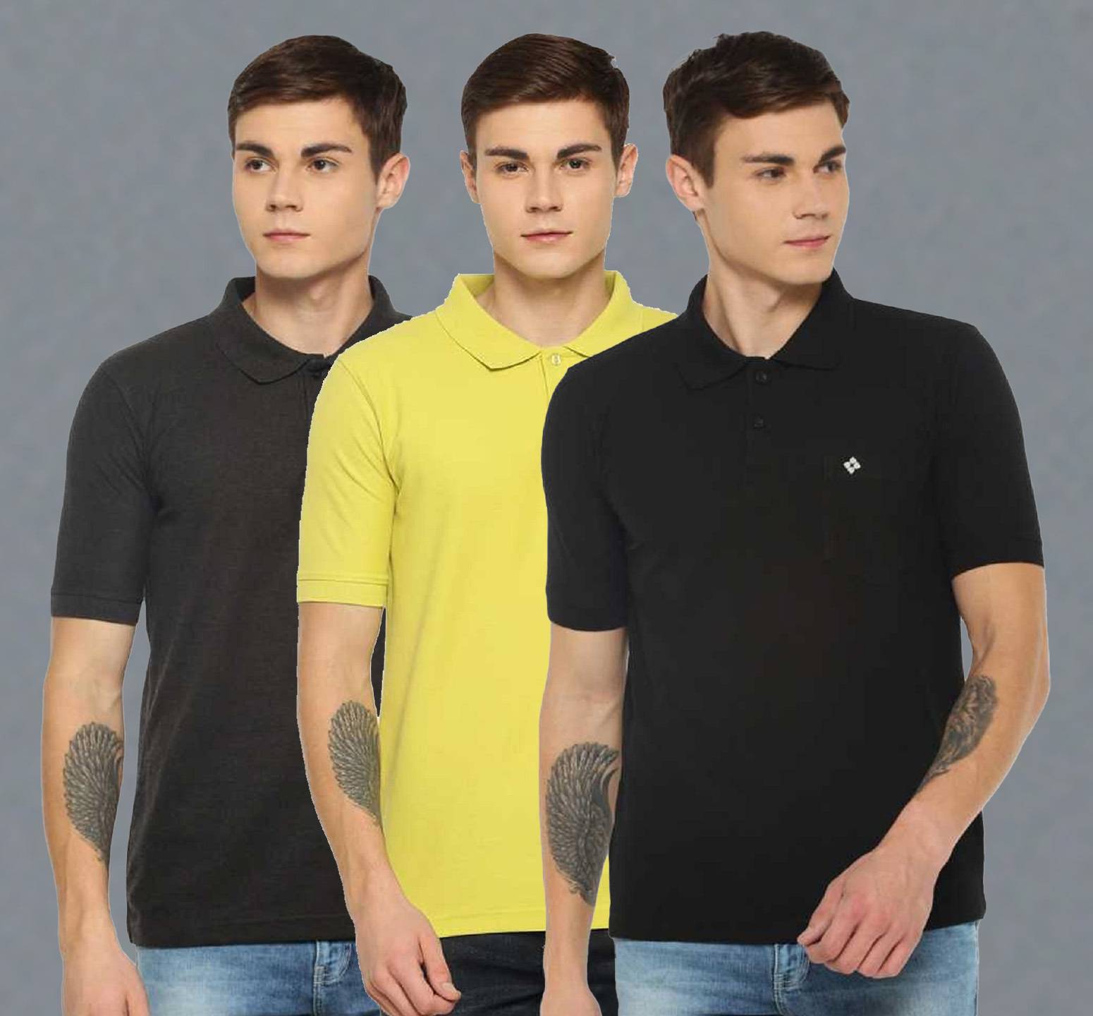 Dollar Solid Men Polo Neck Multicolor T-Shirt
