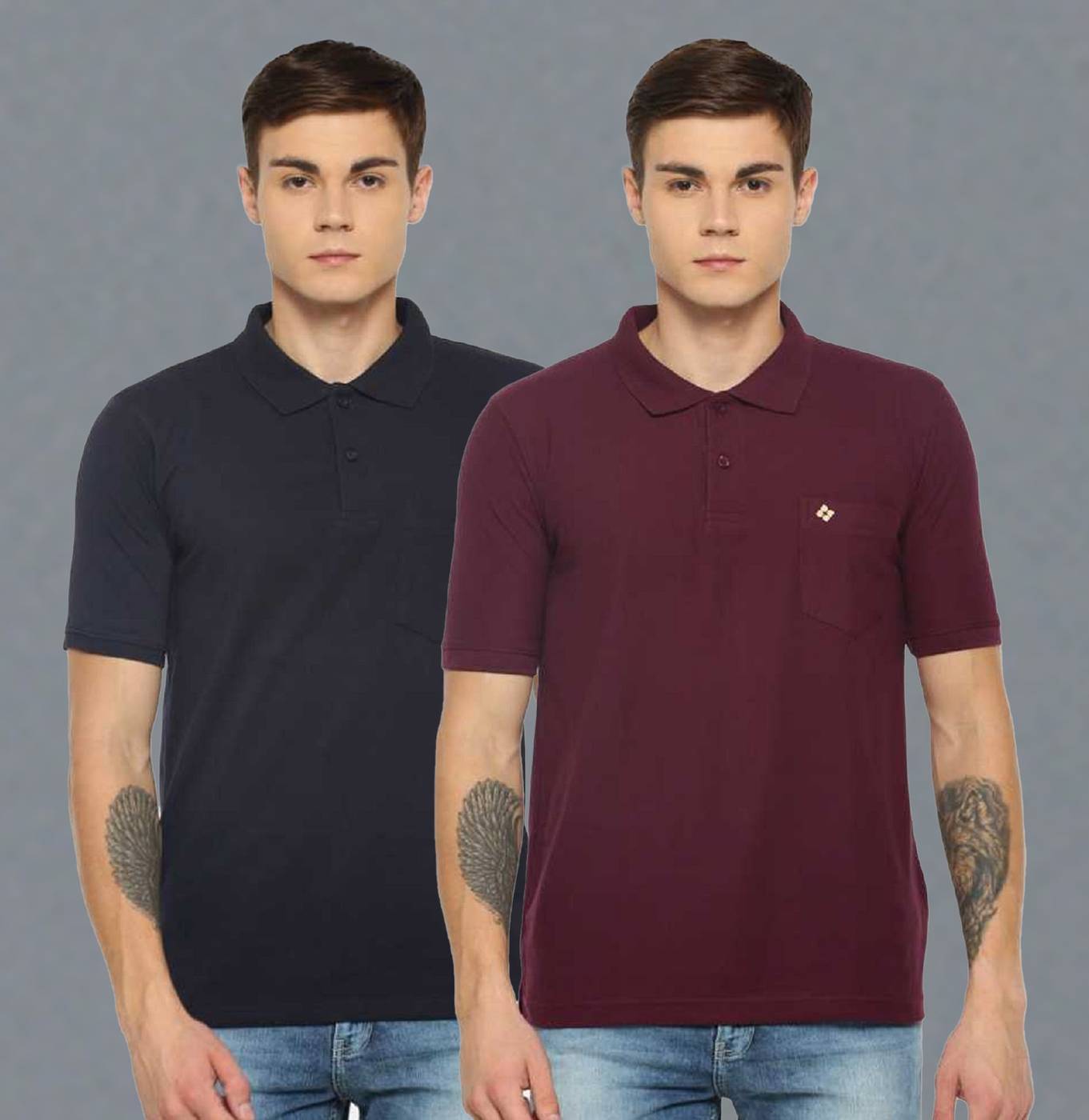 Dollar Pack of 2 Men Solid Polo Neck Cotton Blend Multicolor T-Shirt