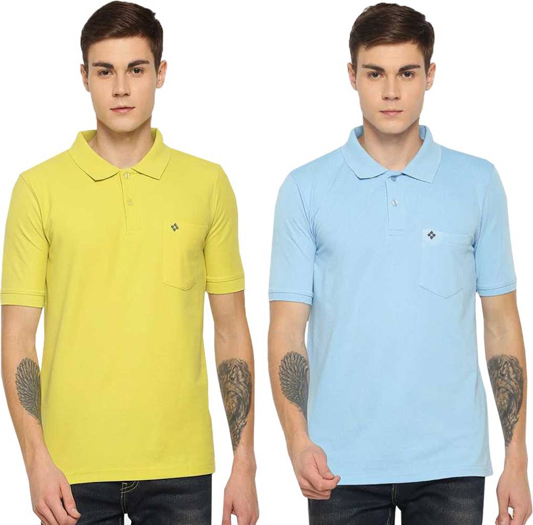 Pack of 2 Men Solid Polo Neck Cotton Blend Multicolor T-Shirt