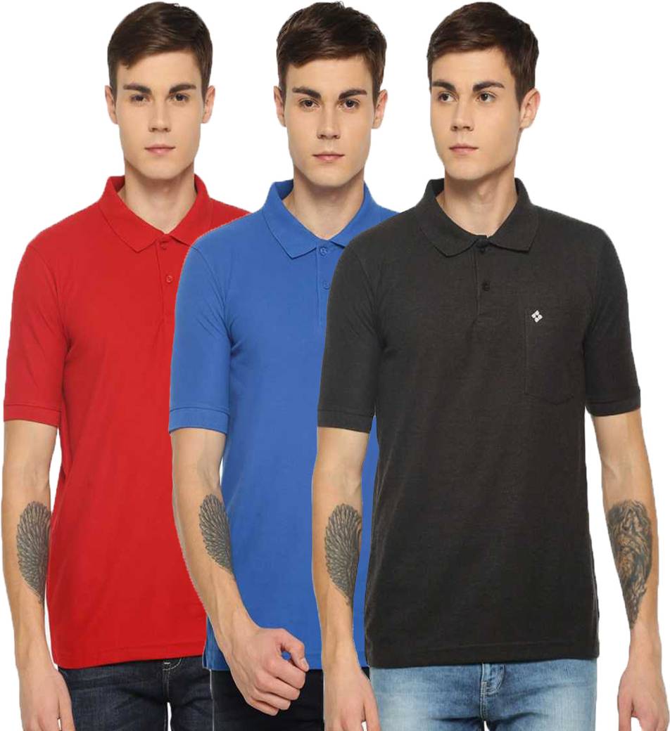 Dollar Pack of 3 Men Solid Polo Neck Cotton Blend Multicolor T-Shirt