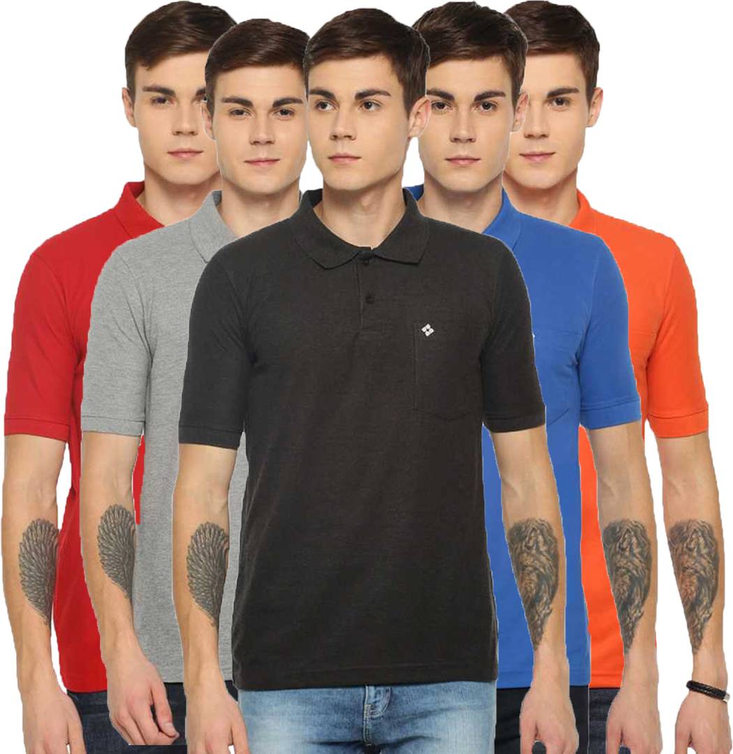 Dollar Pack of 5 Men Solid Polo Neck Cotton Blend Multicolor T-Shirt