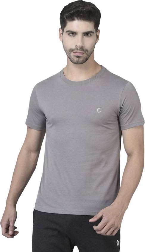 Dollar Men Solid Round Neck Cotton Blend Silver T-Shirt