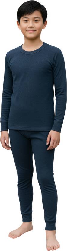 This cozy thermal set from Dollar includes a full-sleeve round neck vest and matching trousers, both made from warm, fleeced fabric. Designed for a snug fit and lasting comfort, it features a soft, fabric-covered waistband and guarantees 0% shrinkage for lasting shape and quality.