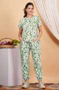 Dollico Women Printed White, Blue Top & Pyjama Set