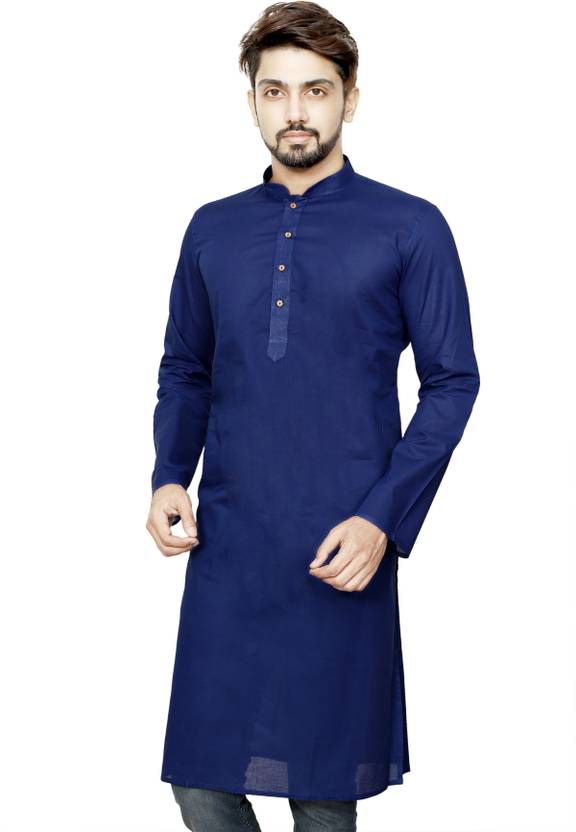 Dolphin Miles Men Solid Straight Kurta (Dark Blue)