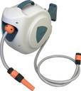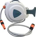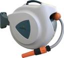 INSTRUCTION MANUAL 1. Introduction this product is made with high quality and very resistant materials. It has a spring mechanism which allows the hose to rewind automatically. It also has a device that controls the length of hose that you pull out and can turn 180 degrees on its axis. It is advisable to install it in a place from which you can reach a greater area. 2. Installation • It is advisable for the hose to be installed near a source of water. For large areas it is more convenient for it to be installed in the middle of the garden or near the work area, that way the hose can easily reach all parts of the garden. • Connect the hose to the tape • The mounting bracket can be installed on a brick wall. The main point must be installed to suit the water • The most appropriate place is on a wall in horizontal position, approximately 1.25 m from the ground. • The connector piece has three holes, which must fit the corresponding screws that they go with (you can also fix the three holes with your own screws). Each screw must have its washer. You can also buy some clamps so that it can move more easily when in use. 3. Using the hose The reel comes with a quality resistant hose. • Prevent sun light from heating the hose, mainly in areas of high temperatures and high water pressure as this can damage it and then make it difficult for it to rewind properly • It is advisable to have the water off before starting to use the hose • Don't let the hose come in contact with any substance containing acetone, caustic products lactic acids, etc. Features : 1)Hose Length 30 Meter 2)Function : Lock Mechanism Style , Mount : Wall Mounted, Material : Polypropylene (PP) 3)Includes part : A)20m hose Reel, B)Spray nozzle,C)quick connector D) Inlet Connecter E) Mounting bracket F)Expansive bolt(4 sets) 4)Maximum Working Pressure?150PSI , Hose Inlet and Outlet?10.7mm - 14.7mm 5)Swivel Mounting Bracket