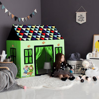 Made from digitally printed fabric, this tent house is crafted for durability without compromising on visual appeal. The material is designed to withstand everyday wear and tear, making it suitable for active and energetic play. This tent house's robust build can help retain shape and structure over time, ensuring long-term use while still looking fun and inviting.
