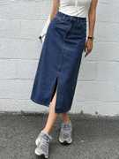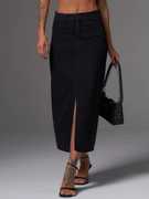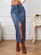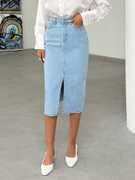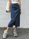 Blue Washed Denim Box Pocket Midi Skirt, in Denim fabric, Casual , Below Knee, Button Closure, Unlined , Slit At Front Hemline and features 4 Pockets