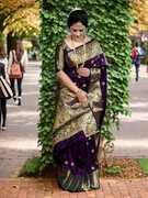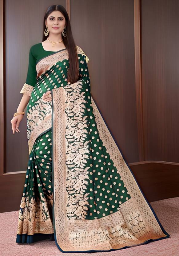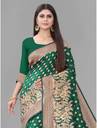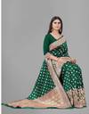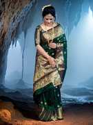 Domesca Printed, Woven Kovai Jacquard, Pure Silk Saree (Dark Green)