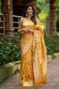 Saree With Unstitched Brocade Blouse ?Coloure :- 1 ( Gold ) ?Fabric :- Softy Silk, Balaton Silk, Kanjivaram Silk saree ?Pattern :- Kanjivaram, Jari Work, Banarasi ?Blouse :- Beautiful Heavy Full Jacquard Work ?Saree Cut :- 5.5 Meter ?Blouse Cut :- 1 Meter