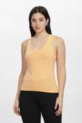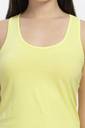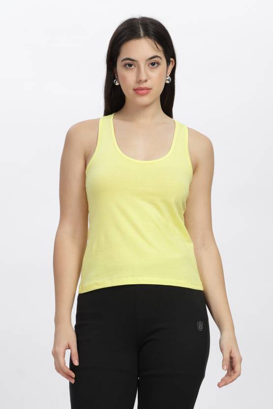 I'm absolutely loving this sleeveless yellow top! The bright color is perfect for spring and summer, and the fit is spot on. The material is lightweight and breathable, making it ideal for warm weather.
