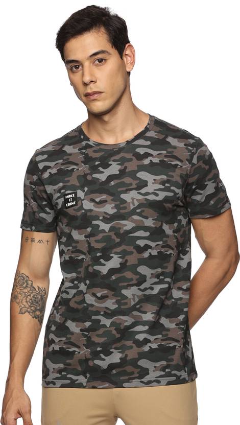 DOMIN8 Men Military Camouflage Round Neck Cotton Blend Dark Green T-Shirt