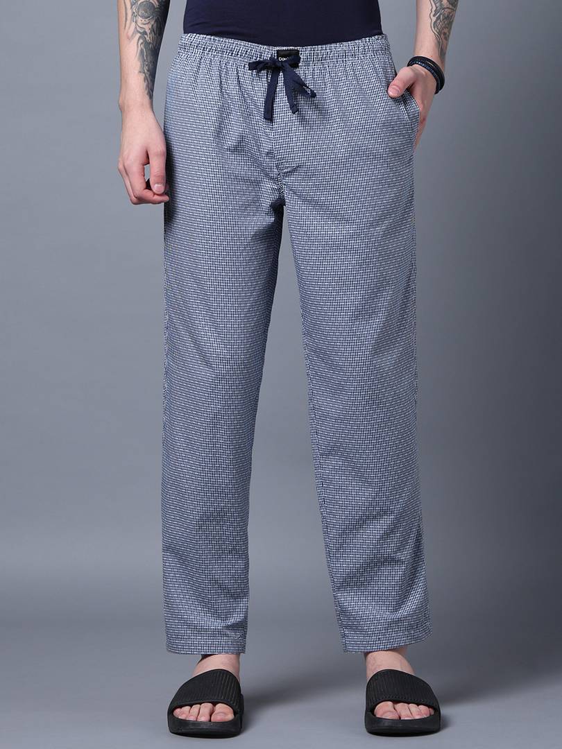 Step into comfort and style with these white and black check lounge pants for men. Crafted from 100% cotton, they offer superior breathability and softness, perfect for casual occasions. The slim fit design ensures a tailored yet relaxed look, while the trendy checks pattern adds a classic touch. Whether you're lounging at home or stepping out for a casual outing, these cotton lounge pants are a versatile choice. Buy these comfortable lounge pants online and elevate your casual wardrobe effortlessly.