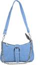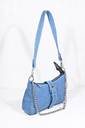 This is a DONICY 100 % denim fabric sling bag. it has a silver chain handle which will make the look of girls very stylish, it has one compartment and one pocket, in this bag you can keep your regular things like phone, card, money, make up accessories etc. yes, it has a ditachable chain and it is an easy to carry bag or it will make your look classy and attractive.