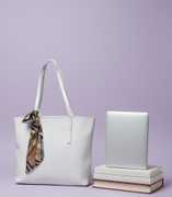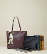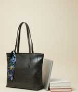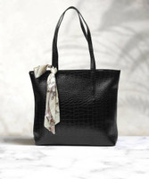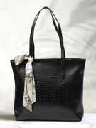 Featuring a textured croc pattern, this women's tote bag stands out with its distinctive and elegant look. This pattern adds a touch of sophistication, making it an ideal choice for both casual and formal occasions. The textured surface enhances this bag's visual appeal and offers a tactile experience, giving it a luxurious feel. This unique design element makes this bag a statement piece that complements any outfit. It also features a bag scarf for addition
