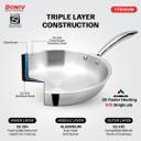 Doniv Titanium Triply Stainless Steel Fry Pan 24 cms Fry Pan 24 cm diameter with Lid 1.8 L capacity (Stainless Steel, Induction Bottom)