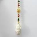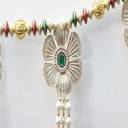 This beautiful beaded hanging consisting of flower at every hanging welcomes your guest with a charming feeling. The big flower with Green color stone gives a refreshing look to your doors and hanging. The very classic combination of Red,Green and Golden moti gives a very traditional look to the toran. The metal hanging enhances the charm to the toran.