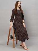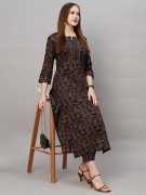 Adorned in delicate prints, this women's kurta and pants set combines elegance and comfort. These prints can enhance your visual appeal, making you stand apart from the crowd. And, with intricate lacework on the yoke and sleeves of the kurta, this set can add a touch of sophistication to your overall ensemble.