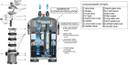 Self priming system,quick and easy disconnect system, easy to adjust water flow rate, mechanical, biological and sterilization system suitable for fresh and marine water