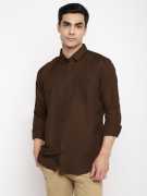 Men Regular Fit Solid Cut Away Collar Casual Shirt
