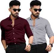 DORAEMON FASHION Men Solid Formal Multicolor Shirt (Pack of 2)