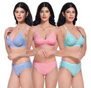 The Bra & Panty Set Printed Multicolor Lingerie Set is a women's undergarment set consisting of a bra and a matching panty. The set features a colorful printed design that adds a touch of fun and playfulness to the overall look.