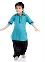 DotnDitto introduces exclusive cotton ethnic outfits to dress up your gorgeous little princess and prince this summer. Thishalf sleeves pathani kurta-salwar set from DotnDitto is a must for your prince wardrobe for special occasions! Grab this south cotton kurta set in classic blue and white combination at unbelievable price. Hurry up...only limited stock left. Please check size chart for correct size. Features: 1) South cotton Pathani kurta with collared neck and half sleeves 2) Salwar with elasticated waistline for comfort fit 3) Fabric - cotton 4) Hand wash 5) Boys Ethnic wear