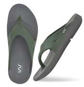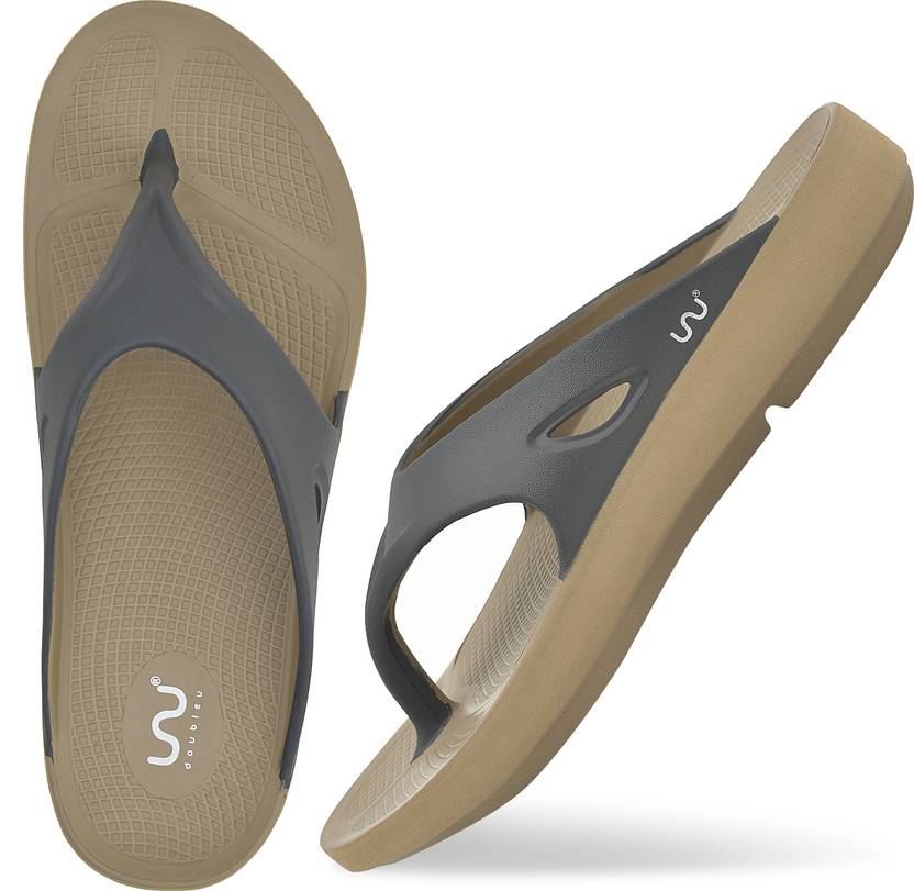 Doubleu Men Men Clasic V Shape Khaki+Grey Flip Flops (Grey , 8)